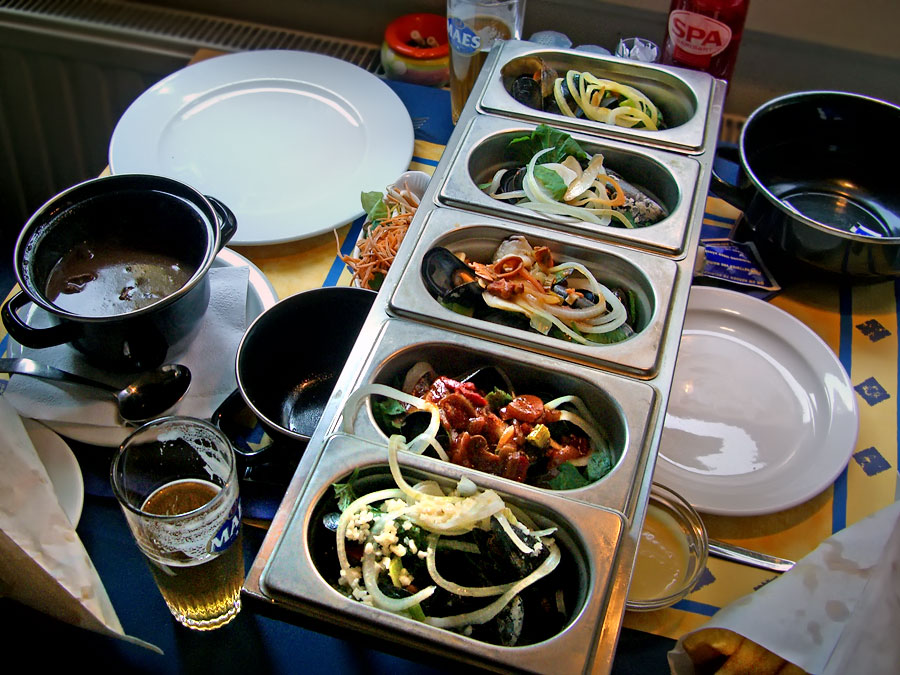 Милый, симпатичный городок. Если в Амстердаме надо было пропускать велосипедистов (у них преимущество перед всеми), то здесь пришлось уворачиваться от лошадей с повозками, забитыми туристами. Нагулявшись, зашли в маленькую таверну, где нам дали мидий, приготовленных пятью разными способами, мясо в пиве и, собственно, пива. Вот тут-то мне пиво не понравилось - будто с водой... Мидии хороши натуральные или в вине.
