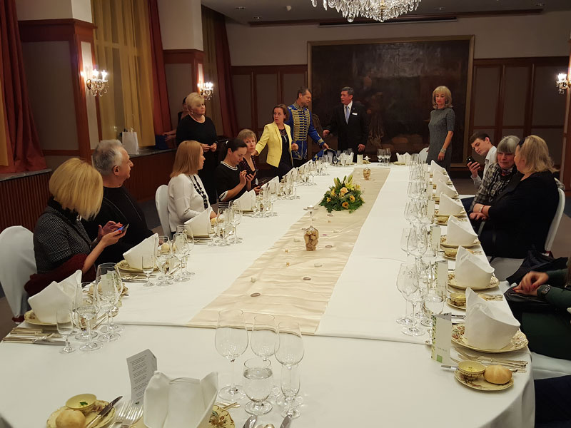 старинными кушаниями и переодеваниями. Полное погружение в венгерское средневековье, примеряла на себя корону, идет...
