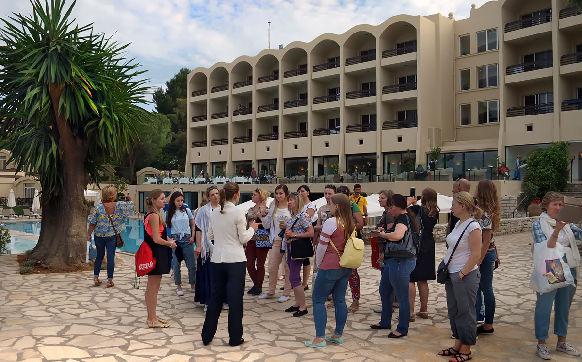 День седьмой. Завтракаем, купаемся (море уже теплое), знакомимся с близлежащими отелями. Возвращаемся, отдыхаем и опять купаемся. Ближе к вечеру собираемся в конференц-зале отеля, где нас ждет встреча с представителями компании MOUZENIDIS TRAVEL и вручение сертификатов. Теперь мы - сертифицированные путешественники по острову.