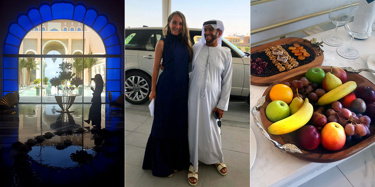 На следующий день был поздний выезд и осмотр курортного отеля Jumeirah Saadiyat Island, в котором мы встретили настоящего шейха, владельца этого отеля. Нам позволили подойти к нему, поговорить и даже сфотографироваться с ним. Шейх оказался