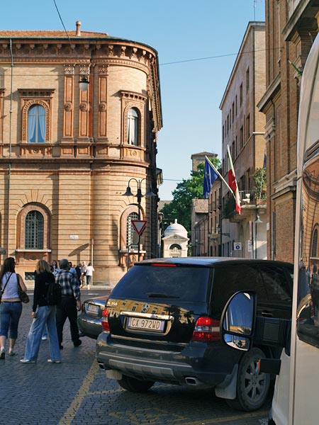 Еще в Москве недоумевали - когда же попадем в Сан-Марино? В прграмме значилось его посещение (в зависимости от расписания рейсов чартеров) в начале или конце путешествия. Но задержка рейса из Москвы отодвинула прилет на полтора часа, и, хотя в Италии время течет на два часа медленнее, все равно прилетали в Римини в половине первого, а вечером к ужину надо уже быть в Болонье, посетив Сан-Марино и Равенну...