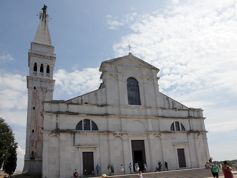 На шпиле колокольни высится почти 5-метровая медная статуя св. Евфимии, ровиньской покровительницы, вроде с рулевым колесом, штурвалом.