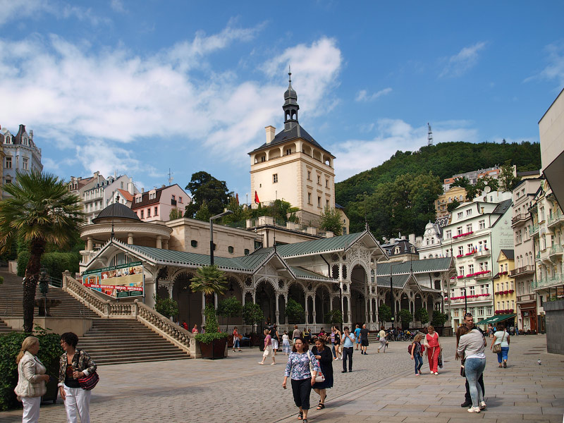 Понедельник. В понедельник - пятый день - после завтрака предстояла очередная экскурсия во всемирно известный город-курорт Карловы Вары. Почти все экскурсии назначаются на Вацлавской площади рядом с Национальным музеем. От нашего отеля до места встречи минут 7-10 неспешным шагом. Город был основан чешским королем Карлом IV. Расположен в 120 км от Праги в одном из живописнейших мест Чехии и славится благотворным воздействием теплых минеральных источников. По дороге заехали на знаменитый стекольный завод Мозер. Цены на шедевры там кусаются и даже очень. Экскурсия была полнодневная, поэтому вернулись в Прагу только к восьми вечера.