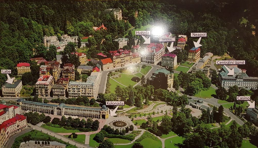 Санатории и отели курорта расположены в красивейших зданиях. Исторический центр города, который и состоит из санаториев, отелей и лечебных учреждений сконцентрирован вокруг живописной колоннады 1889 года.