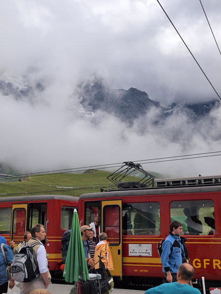 В Интерлакене садимся на поезд и с двумя пересадками добираемся на станцию Юнгфрауйох. Поезда здесь особые, специально для туристов - с окнами, которые можно опускать и любоваться видами и делать роскошные снимки (при наличии фотоаппарата, опыта и хорошей погоды).