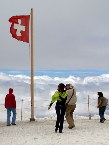 На смотровой площадке установлен швейцарский флаг, это - белый крест на красном полотнище. Говорят, что в те времена, когда Швейцария была нищим голодным краем, крестьяне отдавали своих детей в наемники, так как не могли прокормиться сами, часто наемники встречались на поле боя с обеих сторон. Чтобы как-то отличить земляков и отнестись к ним помягче, швейцарцы надевали белые повязки, на которых рисовали красный крест. Со временем произошла инверсия - красный фон заметнее.