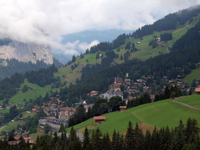 В хорошую погоду оттуда видны все Альпы, включая горы Шварцвальд в Германии и Монблан во Франции. На следующий день погода была для этого подходящей, а мы посмотрели на суровые Альпы. Хорошо, что взяли свитера и куртки, а внизу нас тепло встретил Интерлакен - +28.