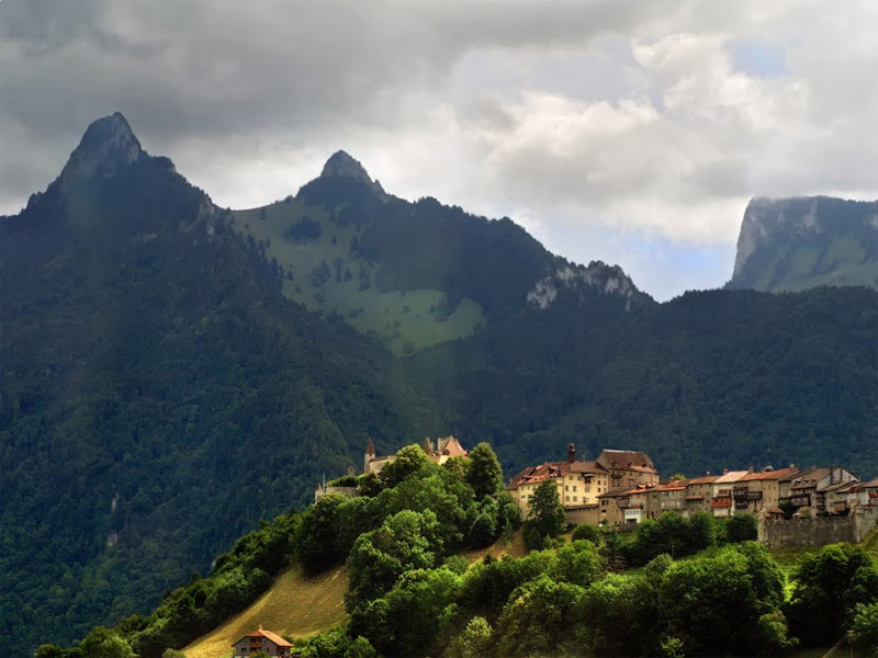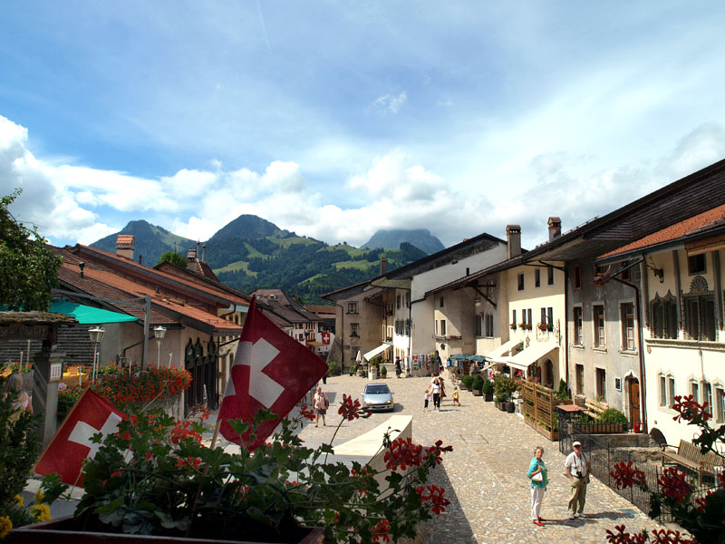 Грюйер (кантон Фрибур) - старинная франкоязычная деревушка, прилепившаяся к замку графов Грюйер, выросшая в малюсенький городок, славный своим сыром грюйер, который производят из молока коров, пасущихся на зеленых холмах вокруг этого места.