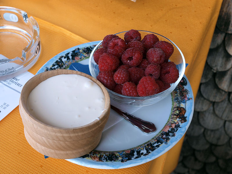Сыр грюйер известен с начала XIIв., называется по месту своего рождения и изготавливаетсяр по старинному рецепту только с июня по сентябрь. Это желтый, твердый сыр без дырок, тот, что мы пробовали, очень жирный и крошится.