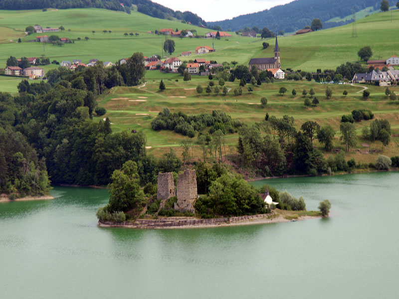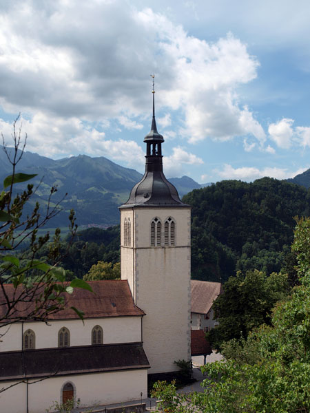 Старинный замок графов де Грюйер (собственность кантона Фрибур), начал строиться в конце XV в. Феодалы собрали там значительные сокровища, интерьеры украшены витражами.