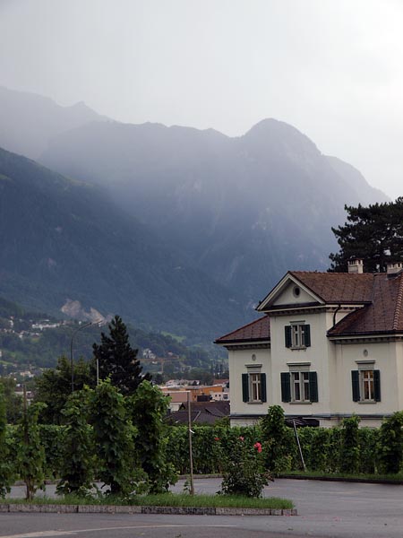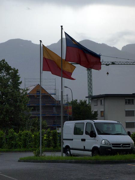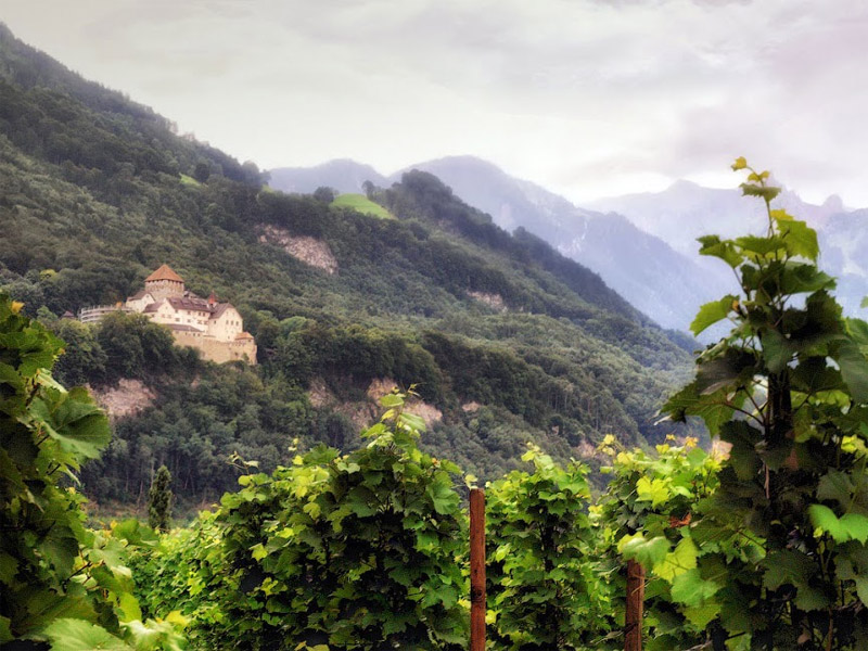 Проехали по мосту с флагами сопредельных государств и оказались в Вадуце, столице княжества Лихтенштейн. Начал было моросить дождь, но потом, пока мы дегустировали княжеские вина, передумал. Князь - человек дела, занимается виноделием, эти вина никуда не импортируются, отведать их можно только здесь. По стене княжеского подвала вьется виноградная лоза с гроздьями синих и зеленых ягод, попробовал на вкус, черный - сладкий, зеленый - как незрелый крыжовник.