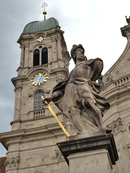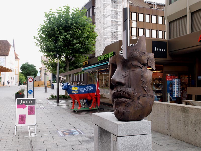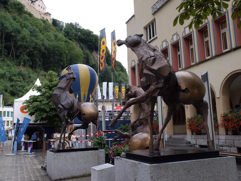 Вообще в Вадуце очень спокойно, стоят и лежат авангардные скульптуры, мостовые украшены изображениями марок, так ценимых в мире филателистов, и фонтанчиками. Вадуц - город небольшой, да и все княжество-то длиной 10 км, включая горы. Но все же, монархия!