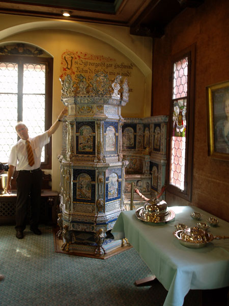Зашли в ресторан, которому уже 150 лет, выпить кофе. Поразились роскоши - везде серебро; увидев нас, обвешанных фотоаппаратами, администратор проводил наверх, открыл и показал нам VIP-залы, где обедал Клинтон. Залы увешаны картинами, стоит печь в изразцах XVIIв. И уж до неприличия роскошна комната для дам. А лестница, ведущая к туалетам, завешана фотографиями знаменитостей.