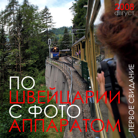 Более тысячи фотографий в этом туре (Швейцария - Первое свидание) в августе 2008г. сделаны цифровыми зеркалками OLYMPUS E-400 со стандартным объективом ZUIKO 14-42 (вес с объективом - 600г) и OLYMPUS E-420 с объективом ZUIKO 12-60, все уличные съемки были сделаны с блендой, ночные съемки - с микро-штатива.