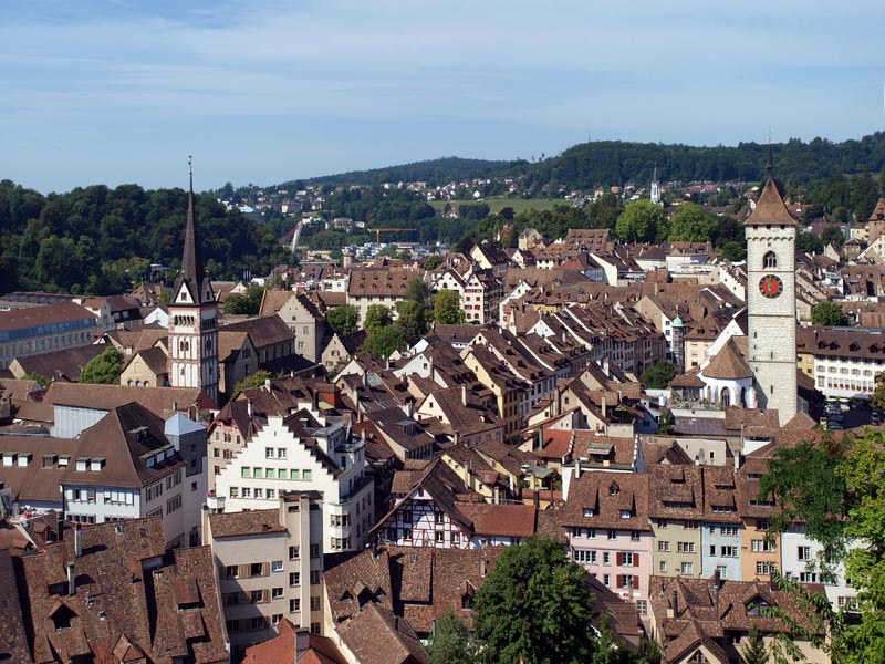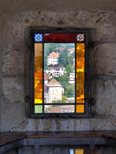Привезли в город, напоминающий своими крышами и кирхами Берн, называется Шафхаузен. Это - пограничный город с замком-крепостью, в украшенное цветными стеклышками окно которого можно было увидеть Германию, или показать им фигу, если ты - швейцарец, и недолюбливаешь старшего брата. В старину его, этого брата, в Швейцарии все-таки побаивались.