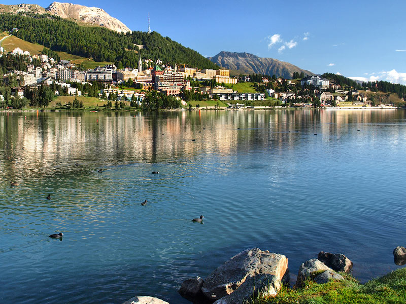 Вторник – целый день в Санкт-Морице, снимали солнечным утром лодки на причале и уток и отражения в озере, поднимались на Корвач, любовались ледником, ели фондю.