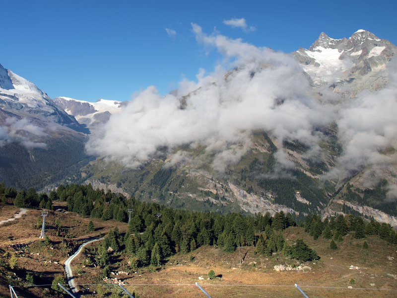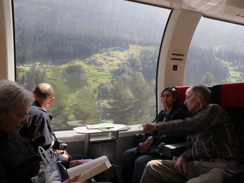 Среда – в 10:02 отправляемся в путь и чуть не весь день любуемся видами из окна Ледникового экспресса по дороге в Церматт: Санкт-Мориц - Кур - Андерматт - Бриг - Церматт, К вечеру (18:00) прибываем в Церматт. Снимать в окно не получилось, мешали сильные блики.